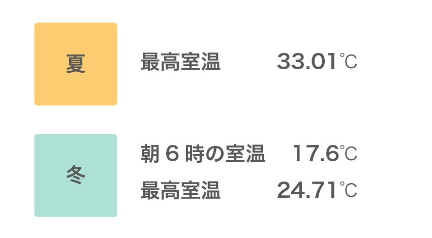 ※冬は夜0時に室温20℃で暖房をOFFにした状態からの室温の変化