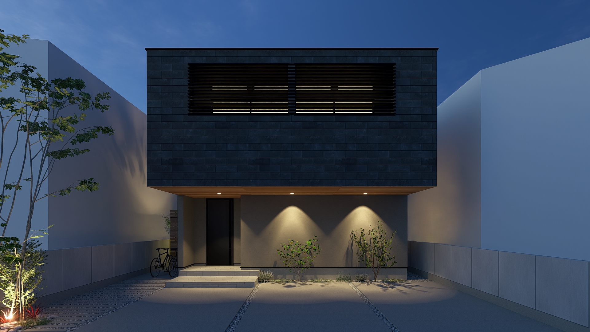 素材感と陰影が美しい、上質で存在感のある佇まいも、この住まいの大きな魅力です。