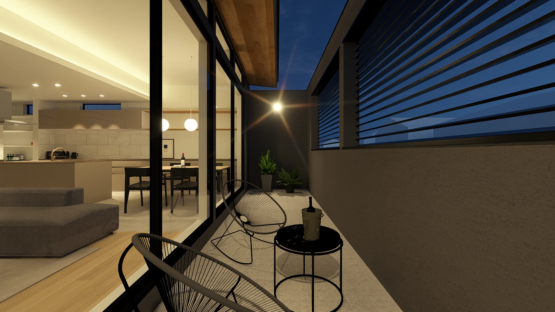 さらに、ヴァレーマ社製の外付けブラインドを組合わせることによって、日射をコントロールしながら快適性を向上。