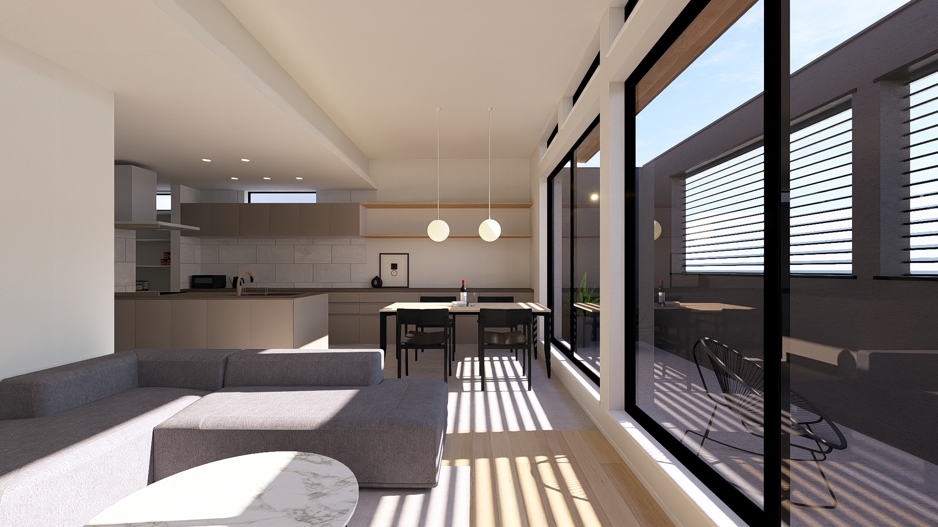 季節ごとの日射や通風を考慮することで、冷暖房に頼りすぎない、心地よく安定した室内環境を実現しました。