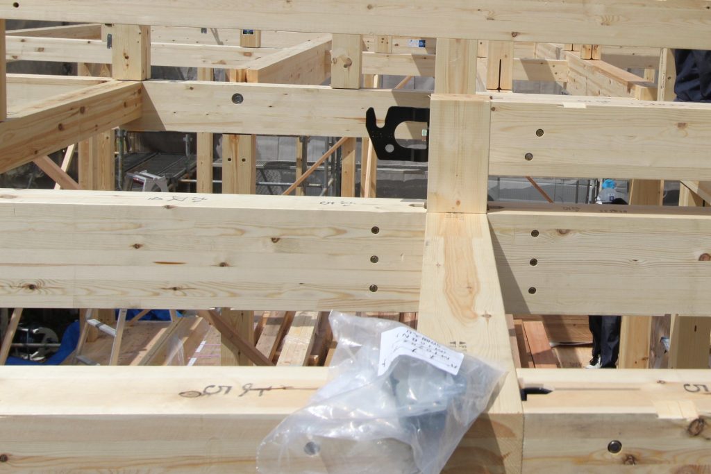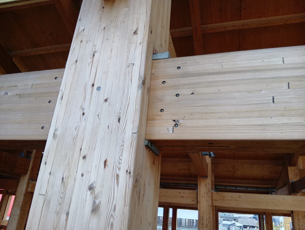 耐震構法SE構法でよく見るドリフトピンです。木材は集成材。
