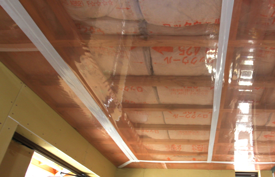 (↑写真は、天井の気密シートと気密テープの写真です)