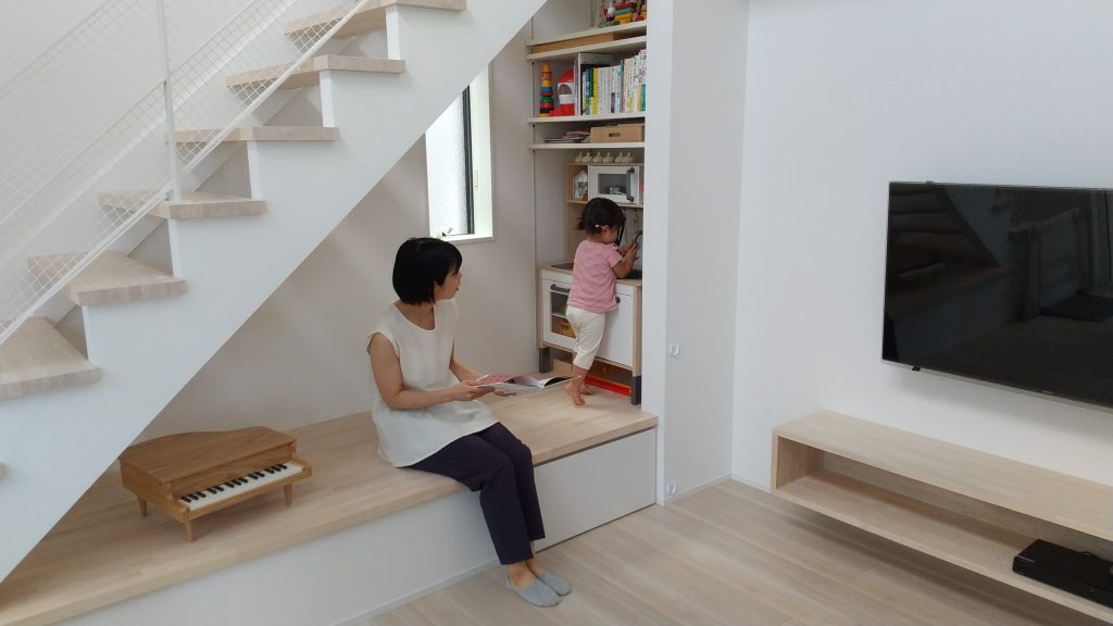 リビング階段の下は収納を取られるケースが多いんですが、U様はお子さんの遊びスペースとして楽しまれています!